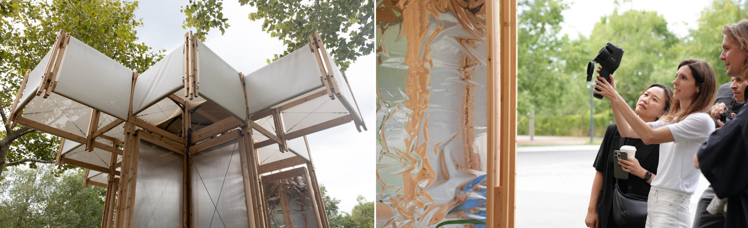 A prototype of the KlimaKover shelter now on public display on Governors Island in New York. Developed by Henning Larsen in collaboration with the University of Pennsylvania and AIL Research, KlimaKover is a low-energy, modular system designed to cool public spaces using 10 times less power than conventional air conditioning.